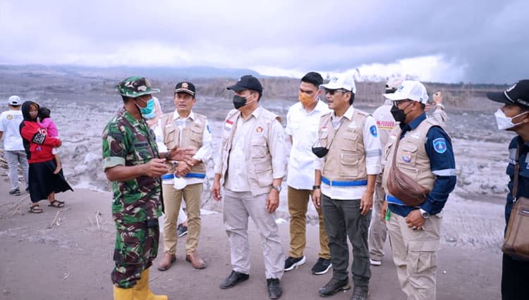 TIMES Nias/Ketua Dewan Penasehat Partai Gerindra DPD Jawa Timur, Bambang Haryo Soekartono bersama DPC Partai Gerindra Surabaya, Lumajang dan Malang saat meninjau dan menyerahkan bantuan Bencana Erupsi Gunung Semeru.Foto Partai Gerindra Jatim